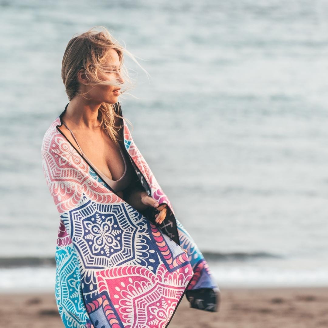 These full sized beach towels fold up to the size of a large burrito. No longer do you have to worry about bulky towels taking up all of the room in your luggage or beach bag. Your towel fits into a small bag, with plenty of room left over for you other essentials.