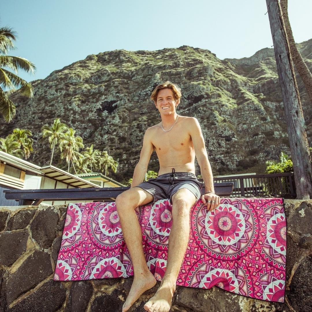 Our towels are designed to be as stylish as they are functional. We've paired our high-tech fabric with vibrant prints that will add to your adventure, whatever it is. Each towel is double sided, with a travel inspired print on the front and our unique quick dry print on the back.
